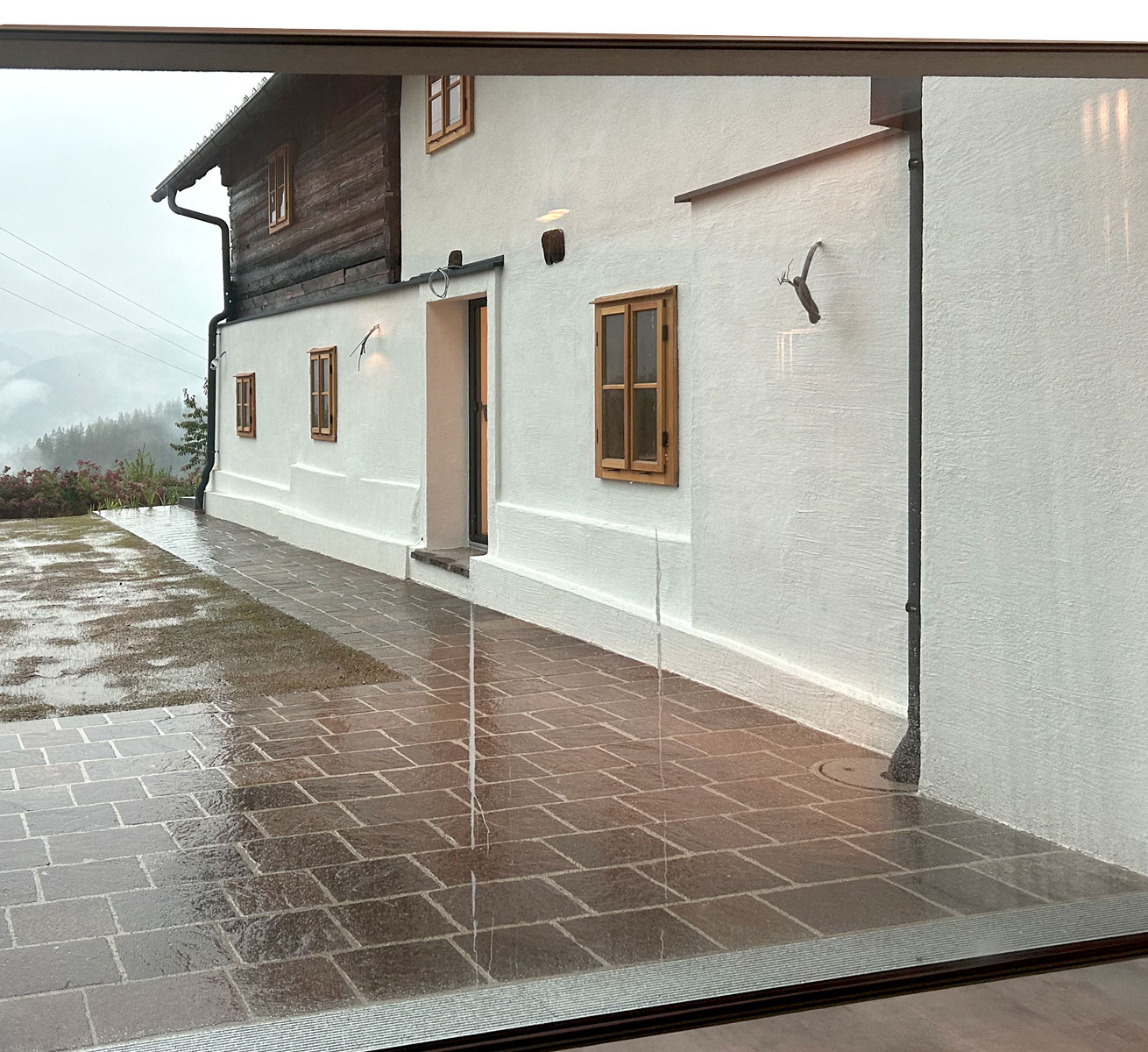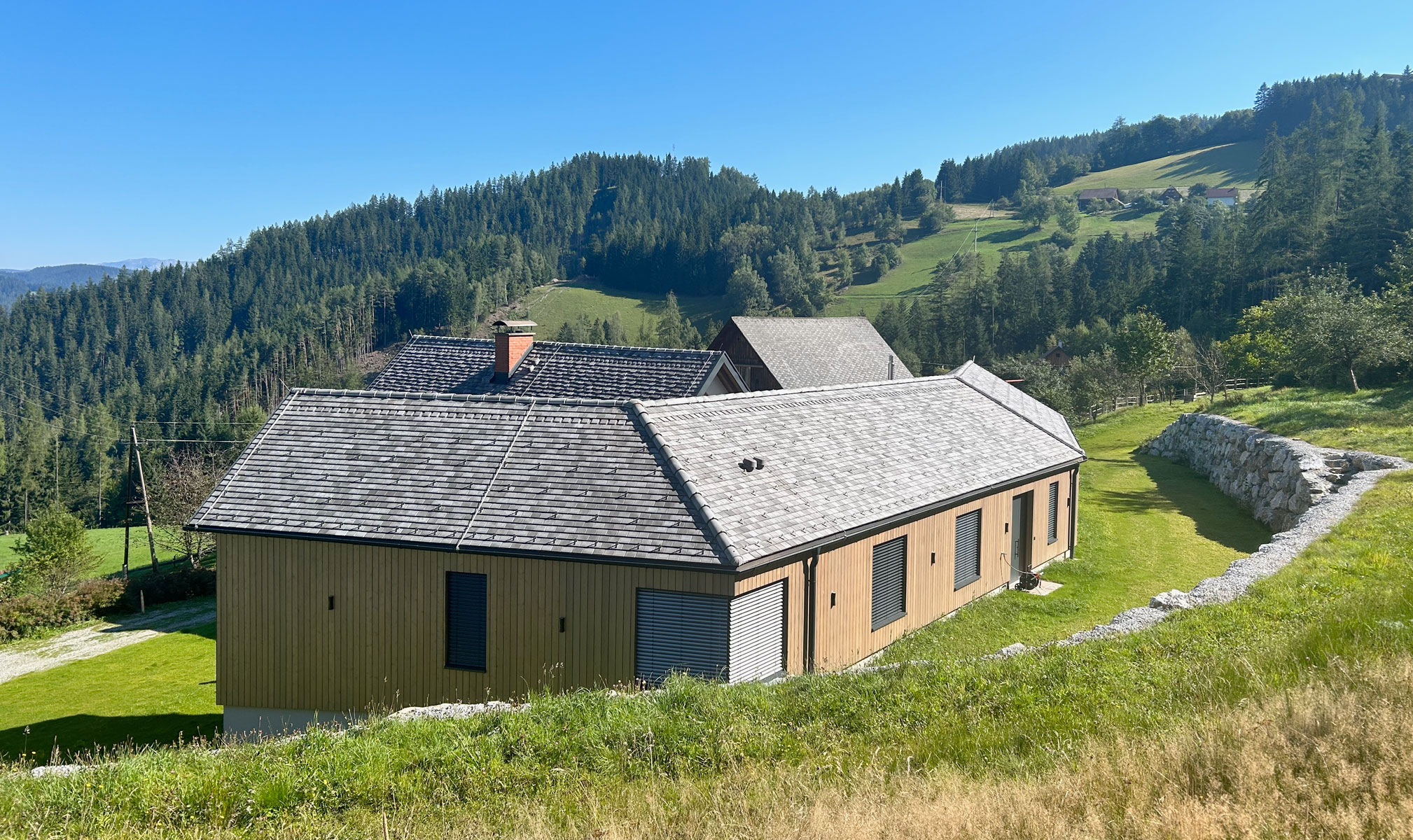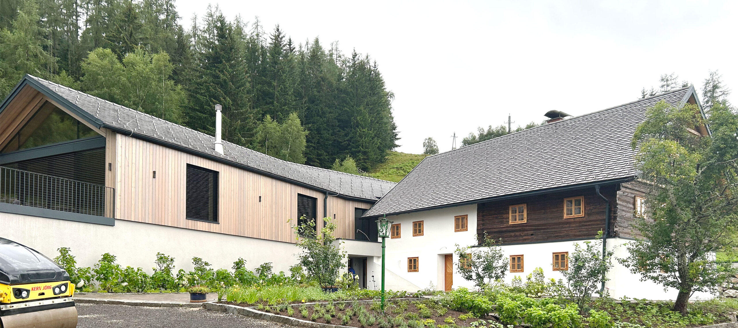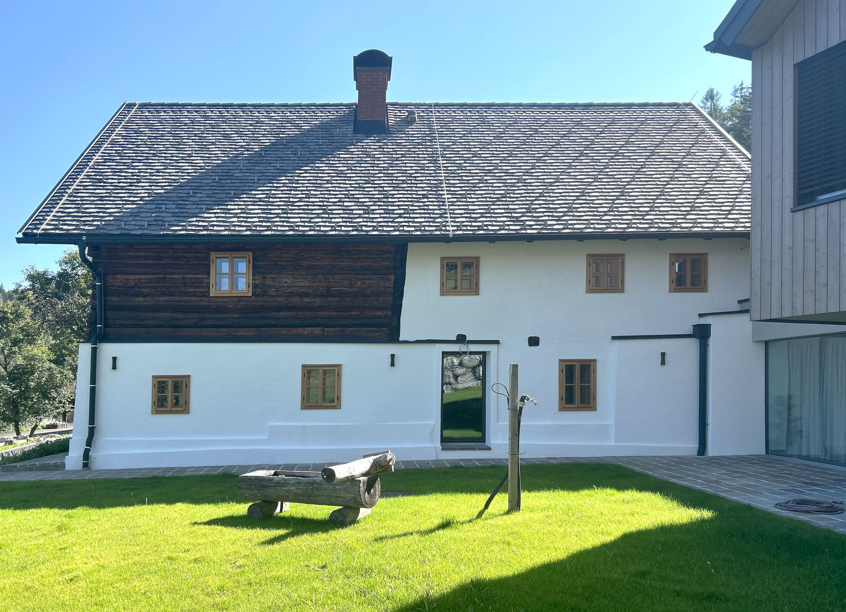 Das Bauernhaus wurde komplett renoviert und thermisch saniert mit Hinblick auf die Erhaltung und Wiederherstellung des originalen Zustands. Dazu gehören die neuen Kastenfenster, die Dachdeckung mit der Anlehnung an Schiefer und die Renovierung der alten Fassade.